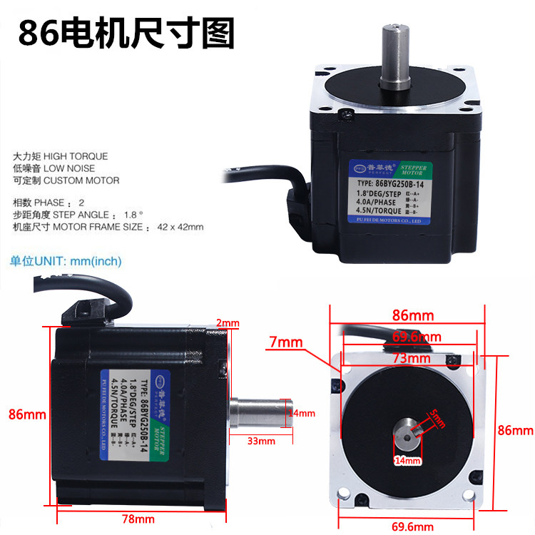 86BYG250B Torque 4 5N Axis 14MM86BYG250B Torque 4 5N AXIS 12 7MM86BYG250B Torque 4 5N AXIS 14
