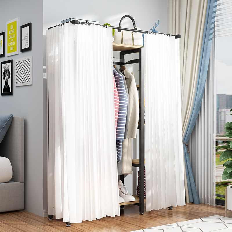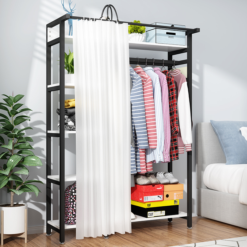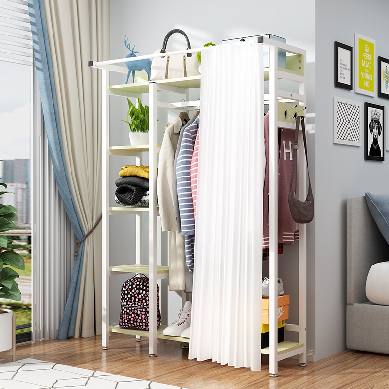 Brief floor hanging clothes hanger mesh red cloak hat rack Easy home bedroom Iron art open wardrobe with curtain containing shelf