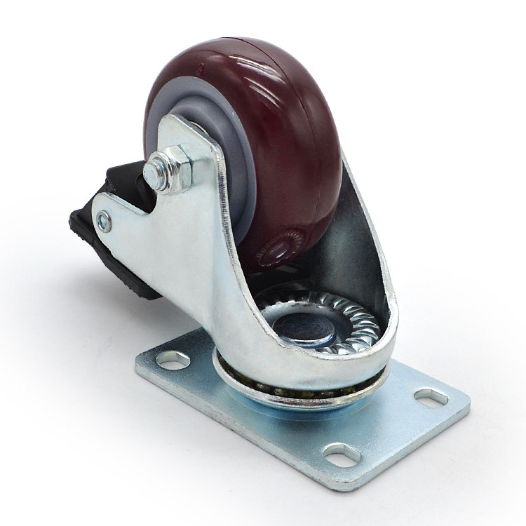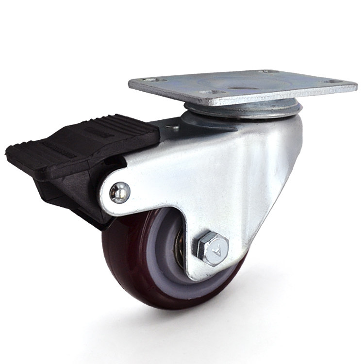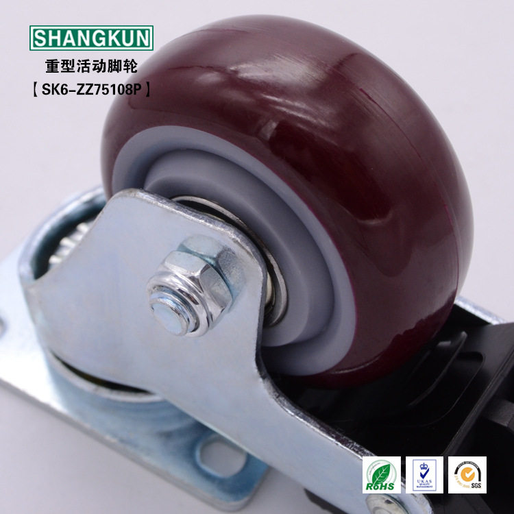 SK6-ZZ75108P industrial heavy duty castors with brake 3 inch low center of gravity load-bearing PU universal wheel wheels