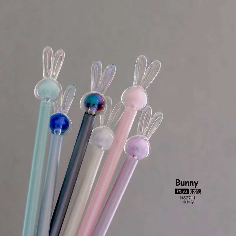 Korean Creative Stationery Bonny Rabbit Middle Sex Pen Cute Cartoon Glazed Small Rabbit Dazzling Super Cute Water Pen Black 0 5