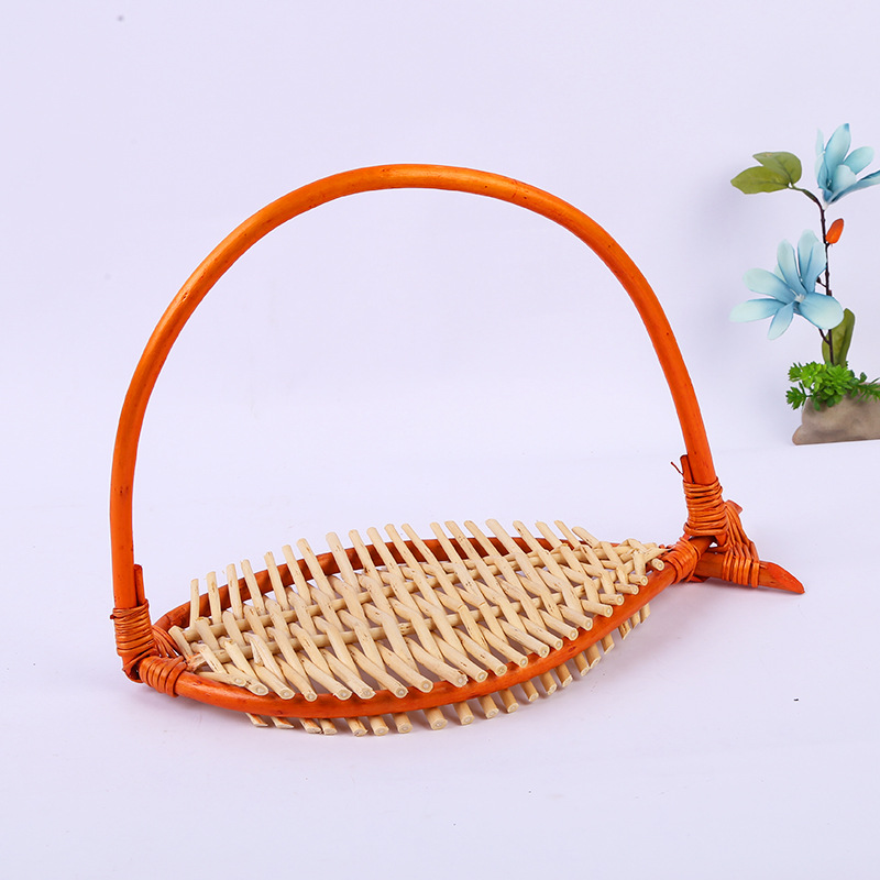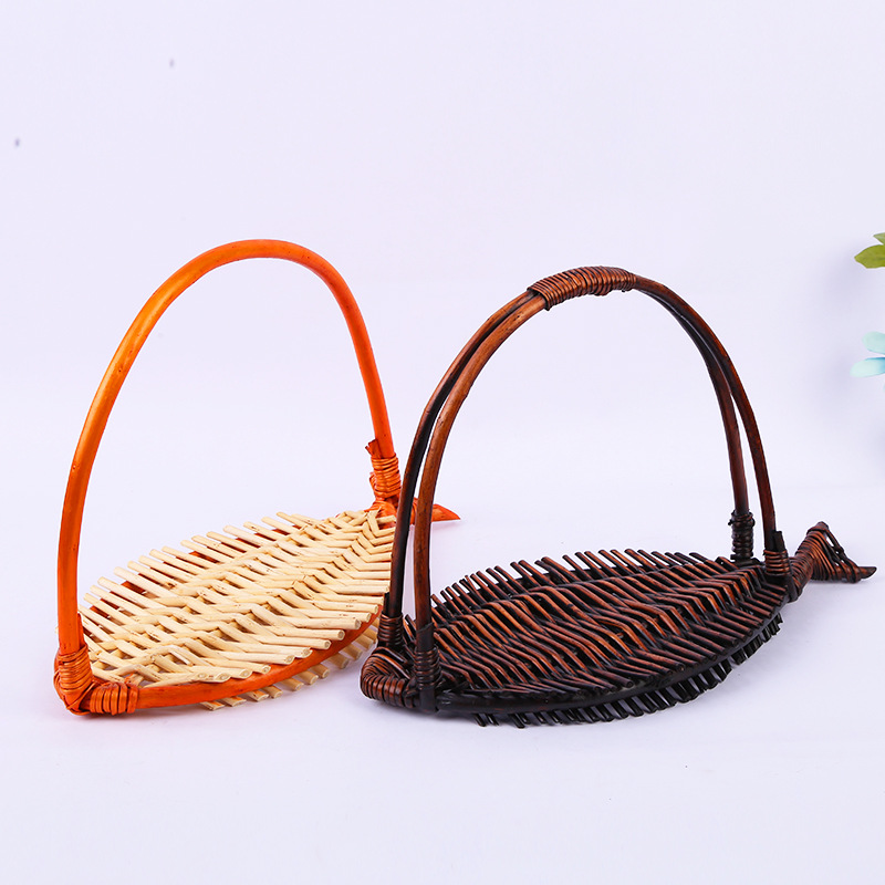Willow Crochet Fish Shaped Lift Basket Pure Hand Woven Fruit Vegetable Intake Basket Fruit Pan Creative Hotel Desktop Nursery Tray