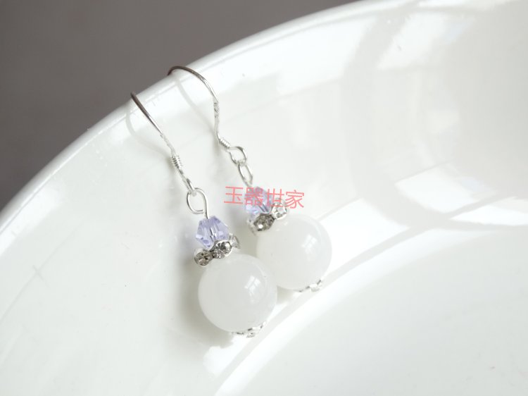 Xinjiang white jade beads and white crystal ear hooks and earrings Xinjiang white jade beads and amethyst ear hooks and earrings Xinjiang white jade beads and white crystal ear clips Xinjiang white jade beads and amethyst ear clips