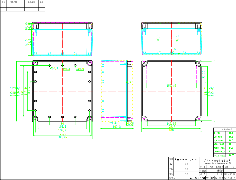 Outdoor plastic waterproof box Power enclosure Security power monitoring box 2-26-1: 192*188*100MM