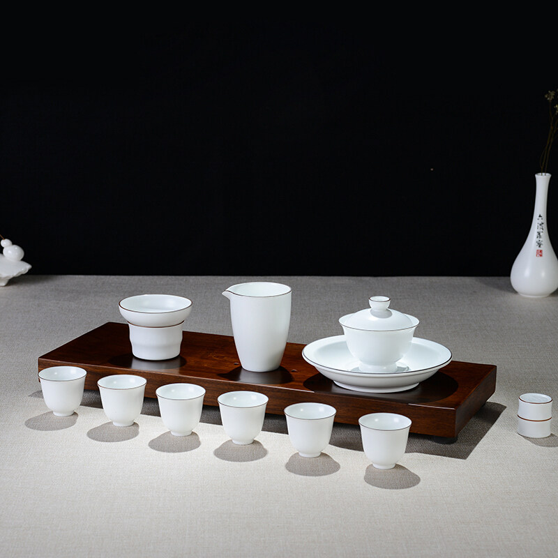 Jingdezhen Gongfu Tea set Household ceramic cover bowl Tea cup Simple white porcelain tea cup Office gift set