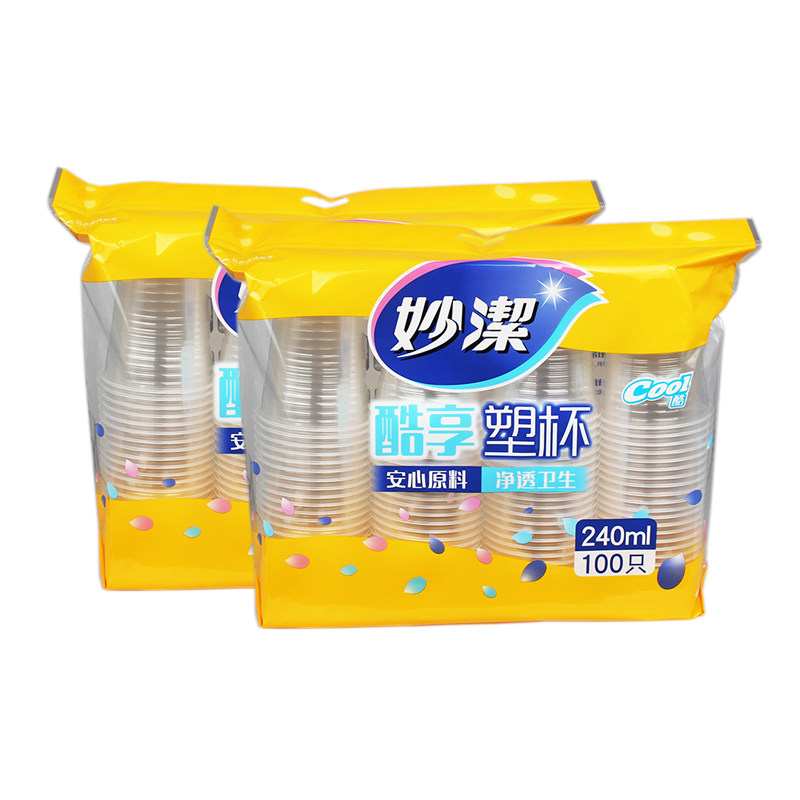 Miaojie plastic cup disposable cup plastic cup water cup transparent cup 200 240ml thickened aviation drink cup
