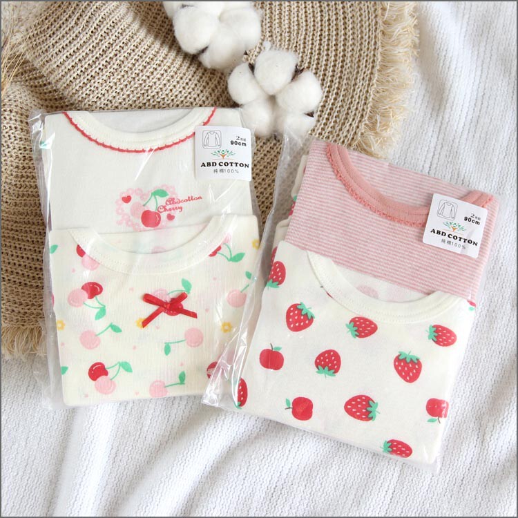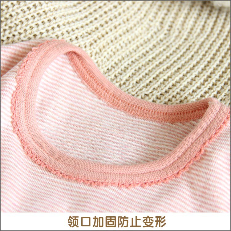 Fall and winter thin material corrugated cotton 9 sleeve children playing a shirt topper girl baby underwear two pieces