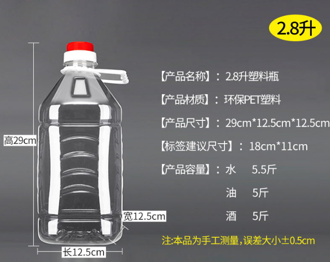 500 ml 1 kg (square bottle) 76 500 ml 1 kg 78 1 liter 2 kg 20 1.5 liter 3 kg 24 2.5 liters 5 kg (normal) 24 2.5 liters 5 kg (thickened version) 24 2.8 liters 5 pounds 24 5 liters 10 pounds (ordinary model) 13 5 liters 10 pounds (thickened version) 13 5.5 liters 10 pounds (thickened version) 13 10 liters 20 pounds (thickened version) 6 10.5 liters (full 20 pounds) upgrade thickened version 6 20 liters 40 pounds (Thicker version) more than 4 are FCL prices, pay attention to the collection and purchase of this store can be shipped first