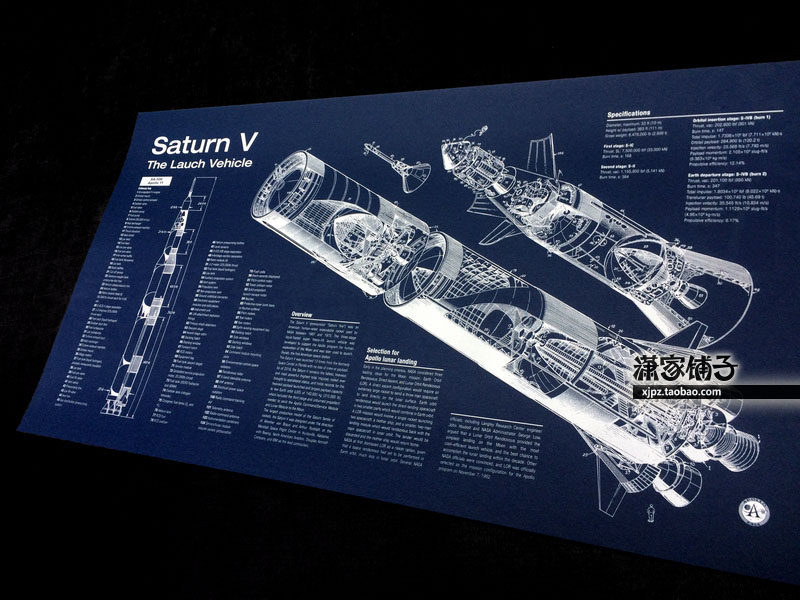 NASA Apollo Saturn V Saturn 5 Saturn V Space Launch Vehicle Structure Blueprint Poster Decoration Painting