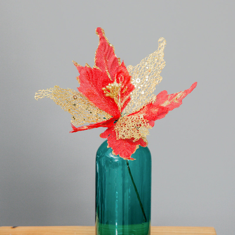 Golden Red Christmas Flower Christmas Wreath Ornaments Silver Christmas Flower Christmas Tree Ornaments