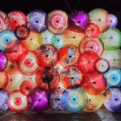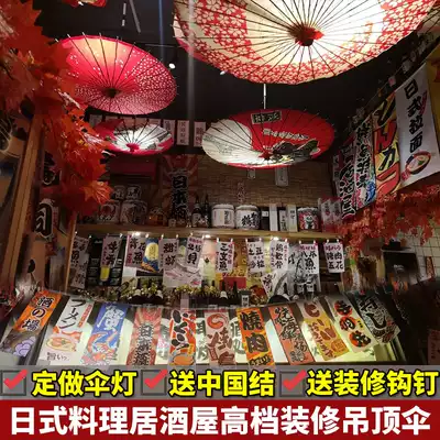 Antique Japanese oil paper umbrella Japanese Japanese Japanese Restaurant Hotel hanging ceiling classical decorative umbrella and wind cherry blossom Japanese umbrella lamp