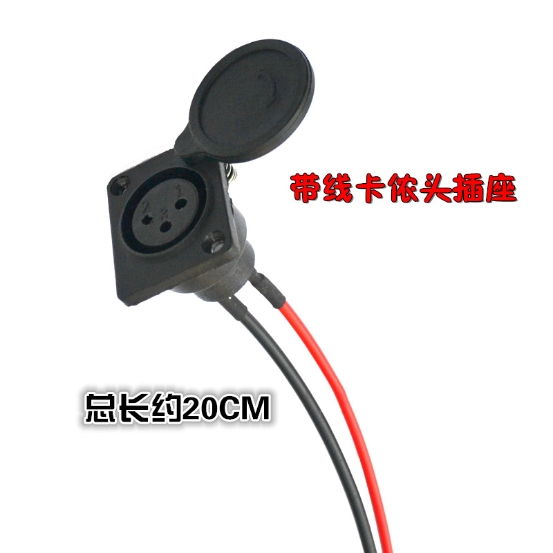 Electric bicycle lithium battery cable Three-hole XLR charging port with cover socket Lithium battery charging XLR plug