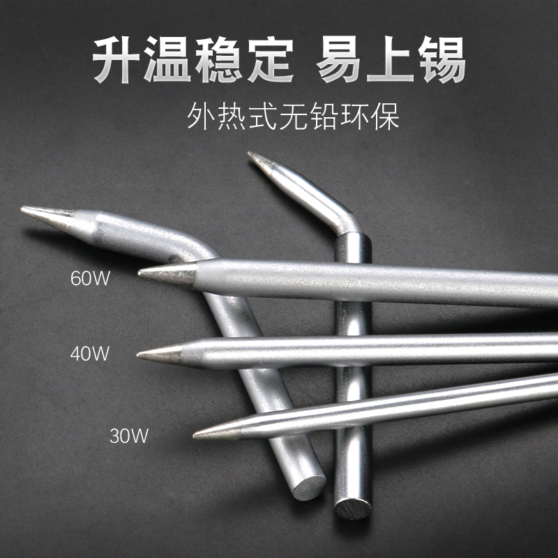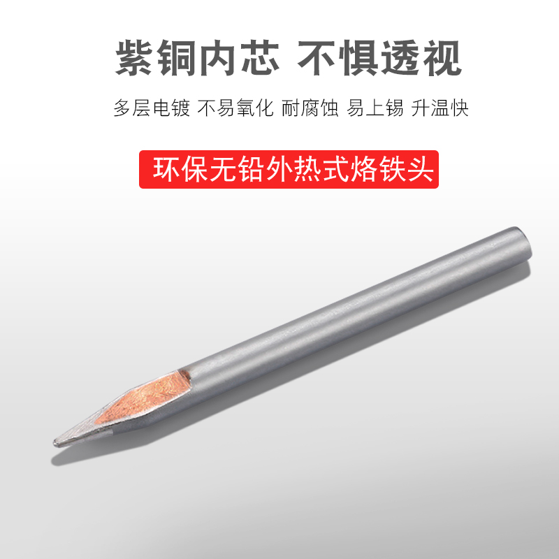 Import quality electric soldering iron head environmentally friendly external heat soldering iron mouth red copper 60W80W100W tip-shaped knife head horseshoe flat