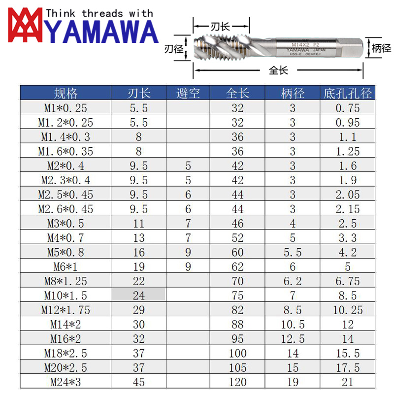 Yamawa tap Japan imported Yamawa m3m4 containing cobalt aluminum copper iron spiral wire tapping machine sp tap