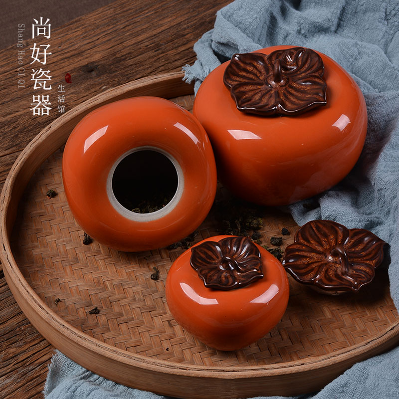 Ceramic Persimmon Tea Leaf Jars Household Seal Tank Large Pu'er Black Tea Black Tea Packaging Gift Box Minima Storage Tank