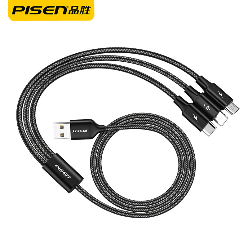 Three-in-one aluminium alloy braided charging wire (1200mm) (Chinese red) three-in-one aluminium alloy braided charging wire (1200mm) (magic black) three-in-one aluminium alloy braided charging