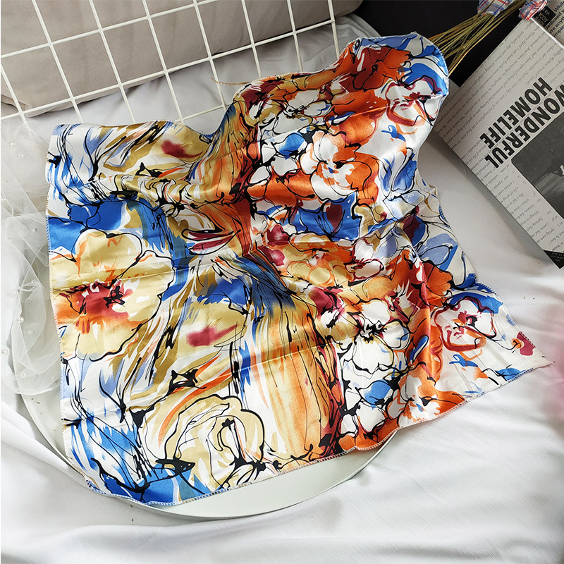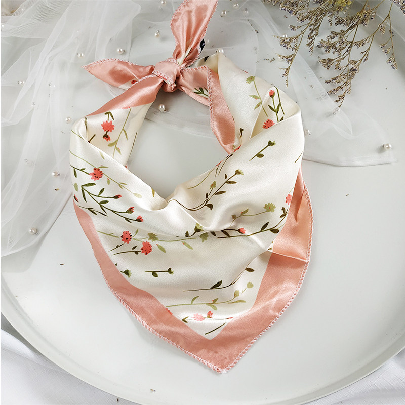 Spring and Autumn Scarf Women's Winter Fashion Printed BAO WEN Joker Small Square Scarf Professional Matching Clothes Decorative Scarf