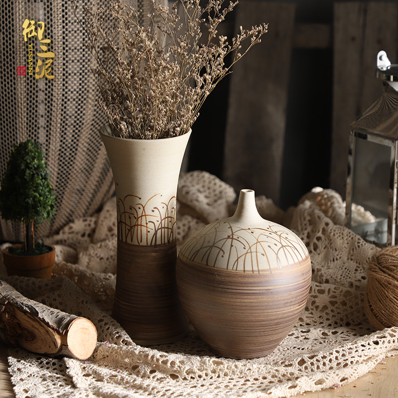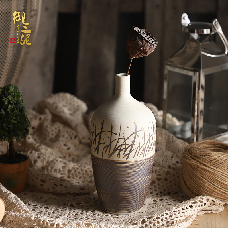 Retro ceramic drying floral floral tabletop flower floral decoration swing decorated living-room minimalist Chinese table home small vase