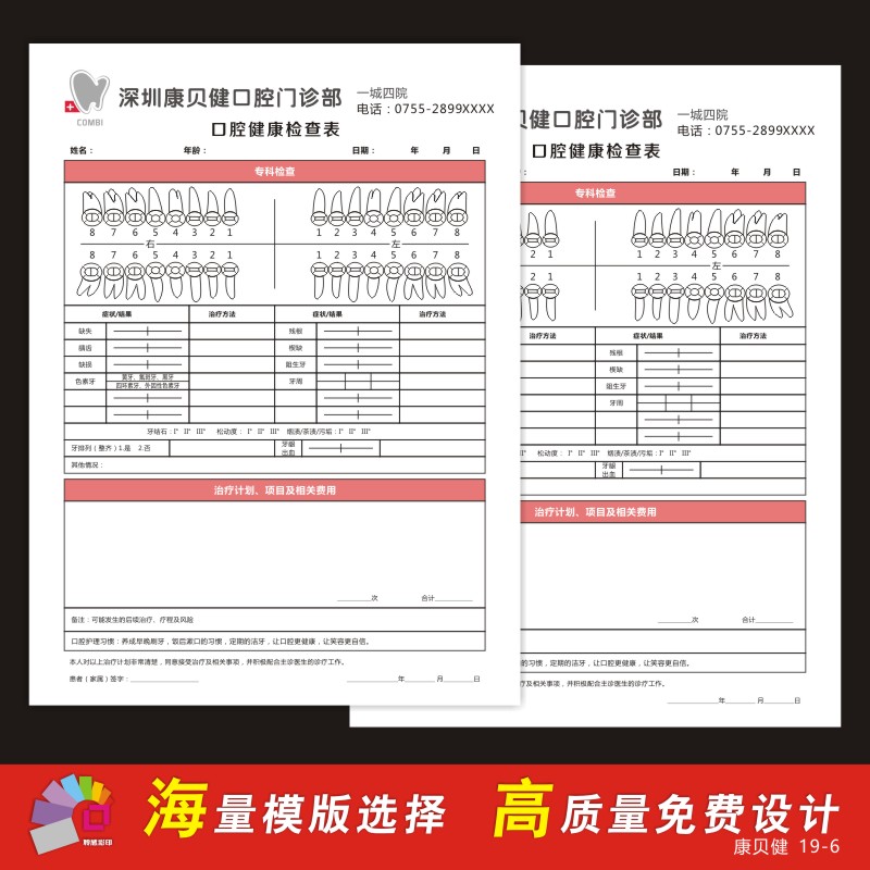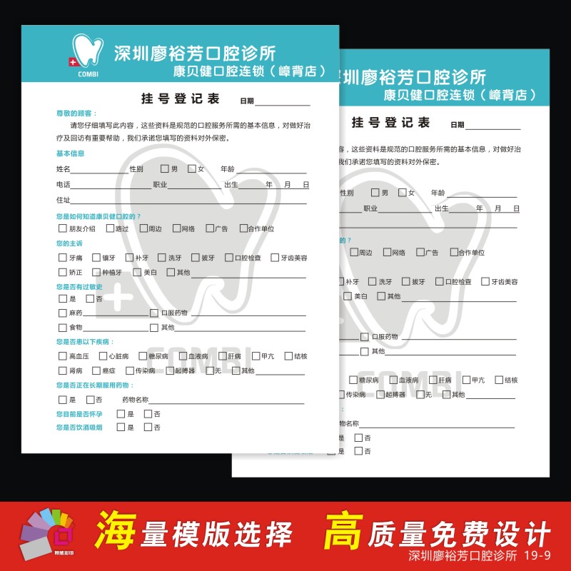 Oral Dental Clinic Health ConditionsRegistry Form Personal Information Records Consumer Card Customized Design Printing
