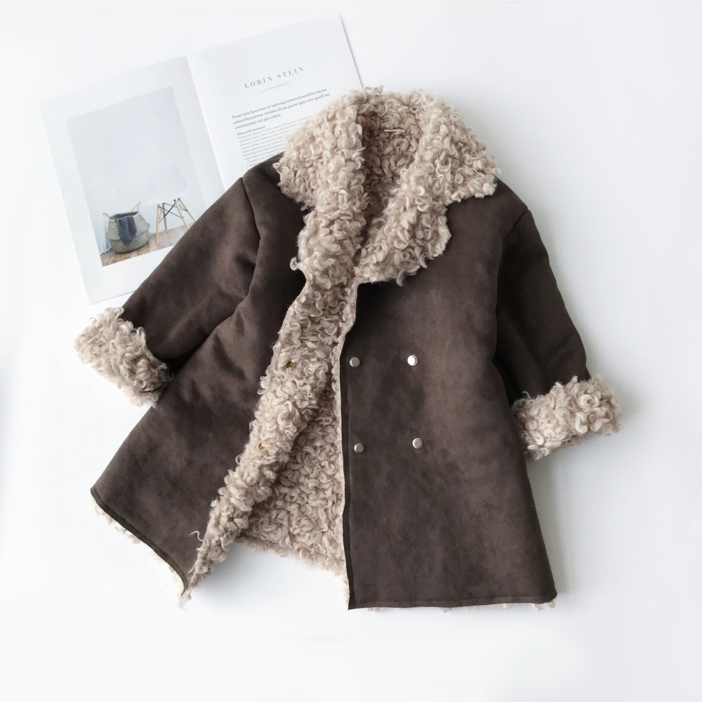Hong Kong Pretty Girl Girls Coat Sheep Curly Suede Velvet Foreign Style Baby Autumn and Winter Dress Thickened Mid-length Wool Coat