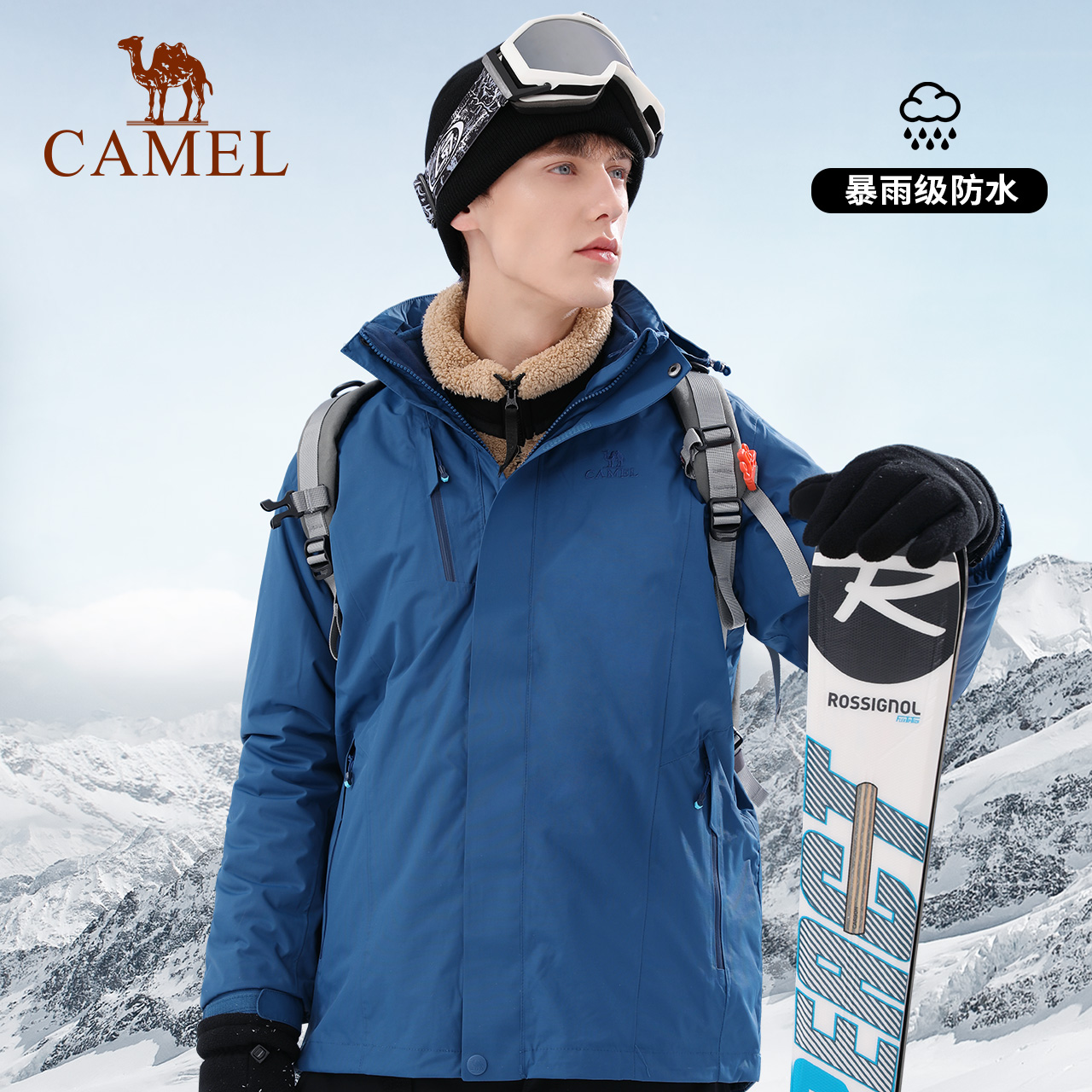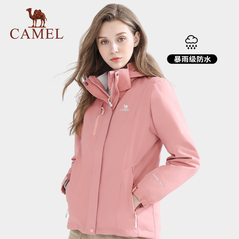 Camel submachine clothing for men and women in three-in-one coat spring and autumn, windproof jacket outdoor rainstorm class waterproof mountaineering clothing