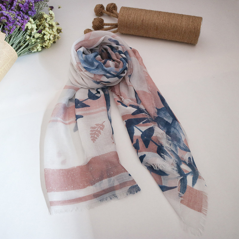 Exit original single scarf shawl cape clear with light red blue trim feel soft and comfortable abstract Tree leaves