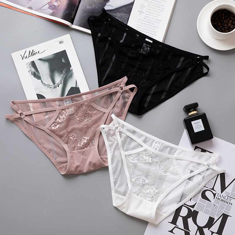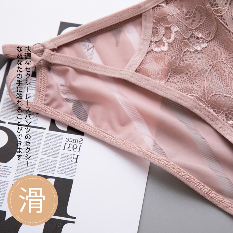 Sexy incognito ice silk panties Female lace girl low waist hot confusion Ultra-thin hollow passion cotton crotch briefs