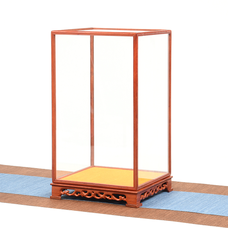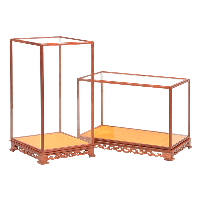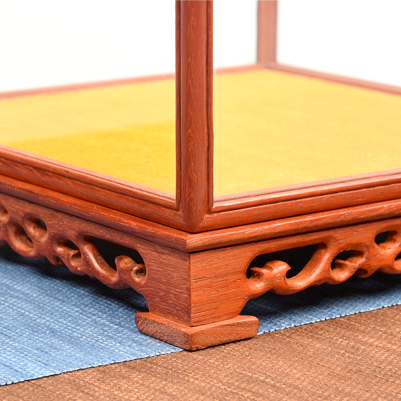 Red Wood Carved Glass Cover Pendulum Pieces of Buddha Show Dust Cover Antique Base Solid Wood Glass box Buddha Niche Crafts Gift Hem