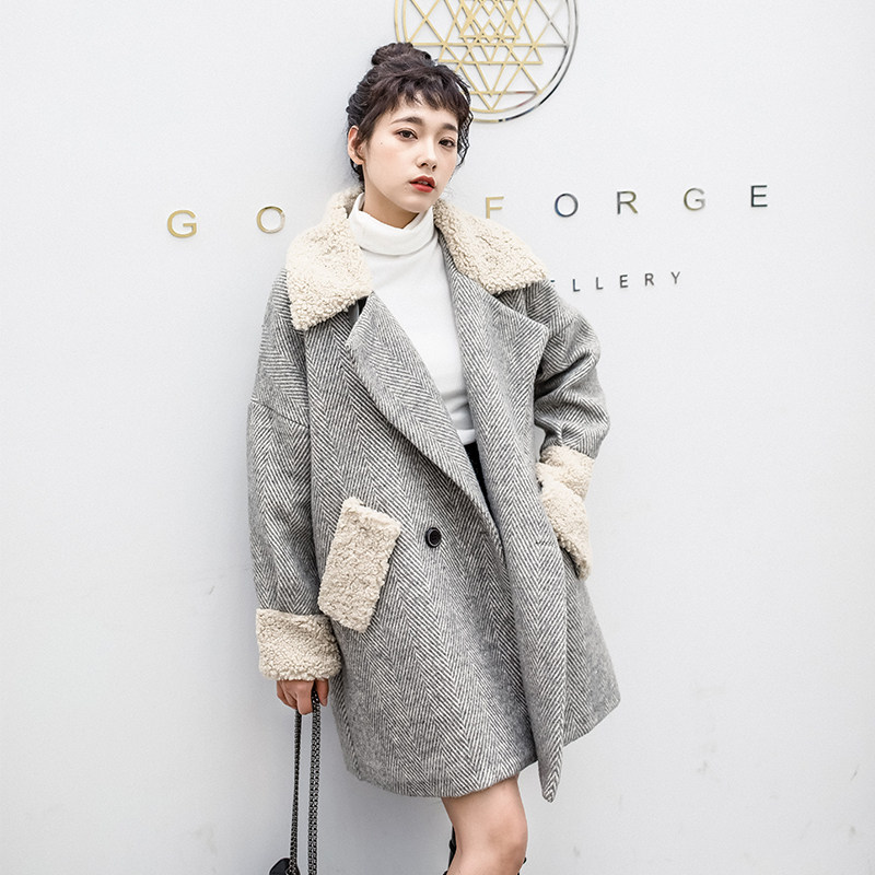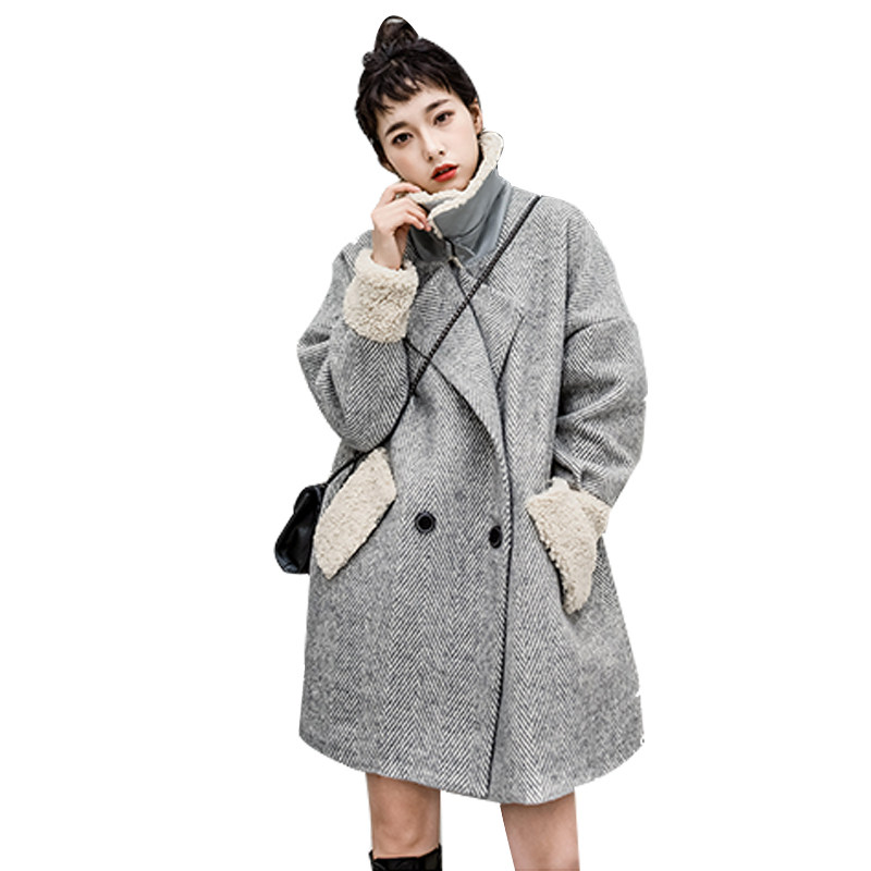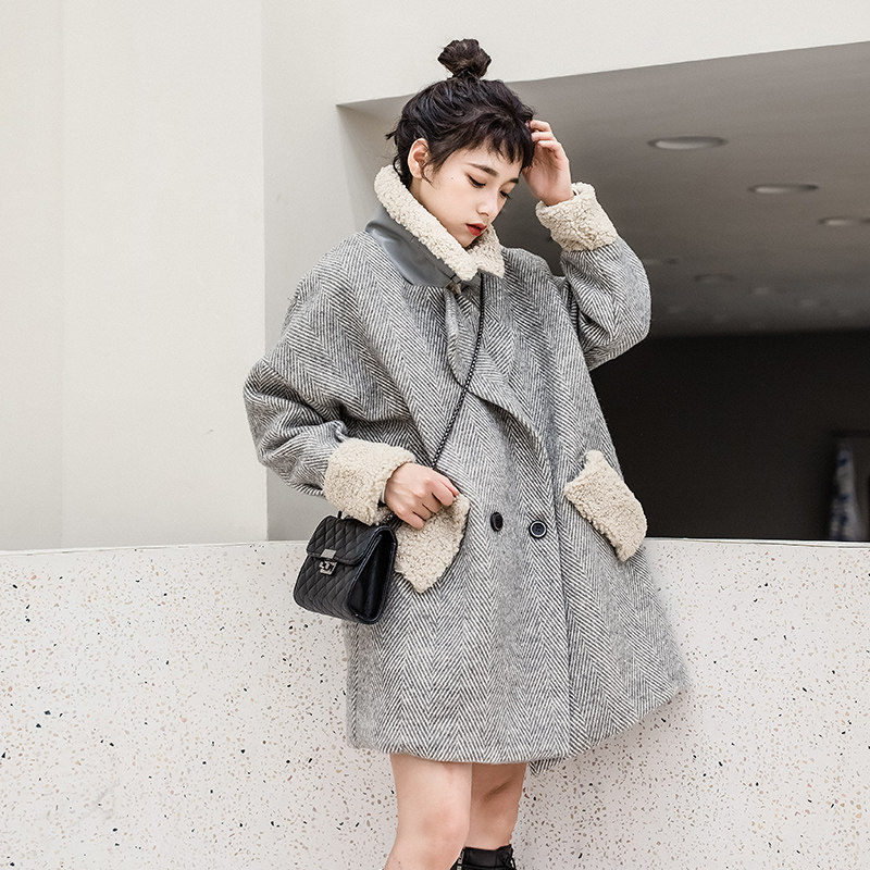 Maternity winter coat woolen women's autumn 2019 new winter thickened plus velvet medium-length lamb quilted woolen coat