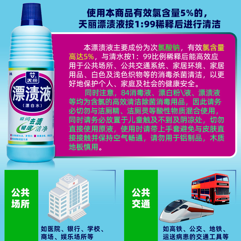Langqi Tianli bleaching liquid 600gx3 bottles of bleach bleach household laundry liquid disinfection, sterilization, stain removal and odor removal
