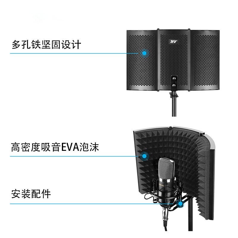 RODD microphone recording studio sound insulation cover microphone wind screen anti-spray mesh sound absorbing cover anti-noise reduction board three doors