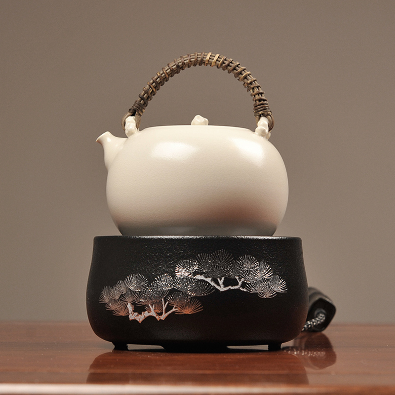 Yingge black crystal furnace Household tea furnace Handmade pottery pot High temperature cooking teapot Coarse pottery heat-resistant ask spring pottery pot