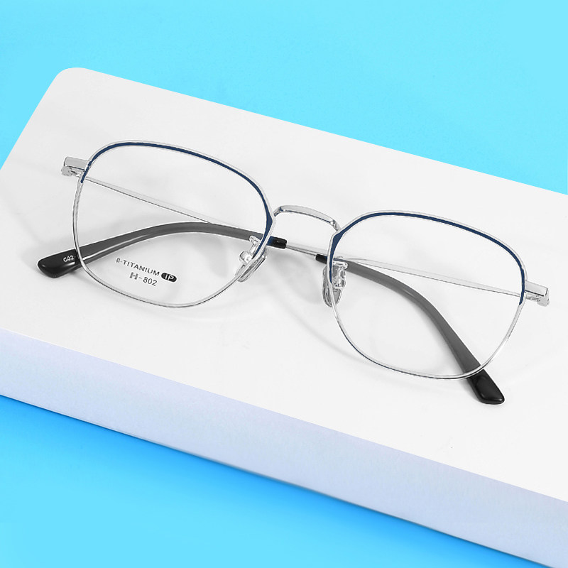 Titanium alloy Eye frames men's women's fashion casual display slim face no lens box finished flat light spectacle frame