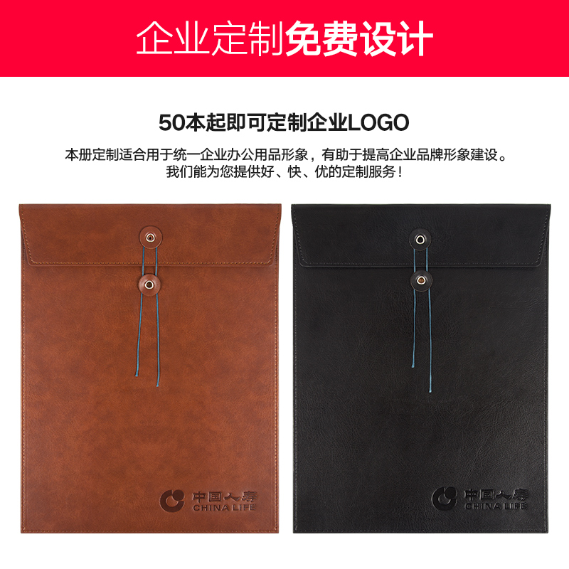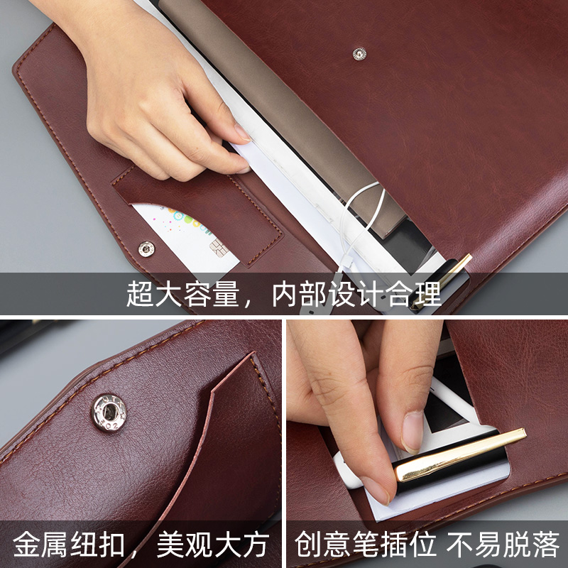 a4 Leather leather member document bag Portable large capacity pregnant woman file bag Contract bill business office high-grade kraft paper thickened paper storage briefcase information bag can be customized logo