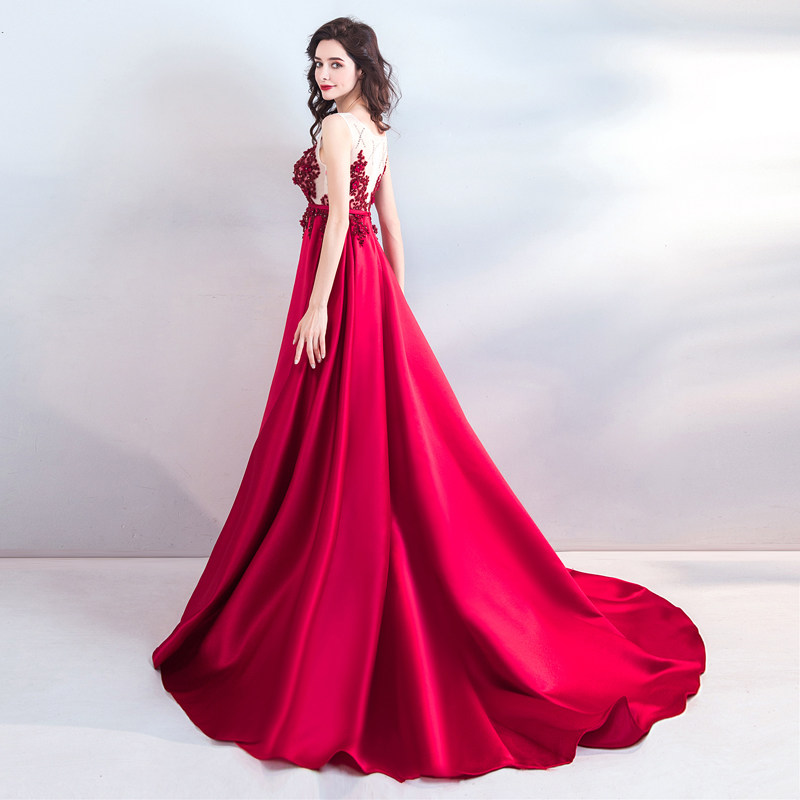 Angel Wedding Temperament Wine Red Color Wedding Toast to Bride Answer Wedding Dresses Wedding Dresses Evening Dress 7718