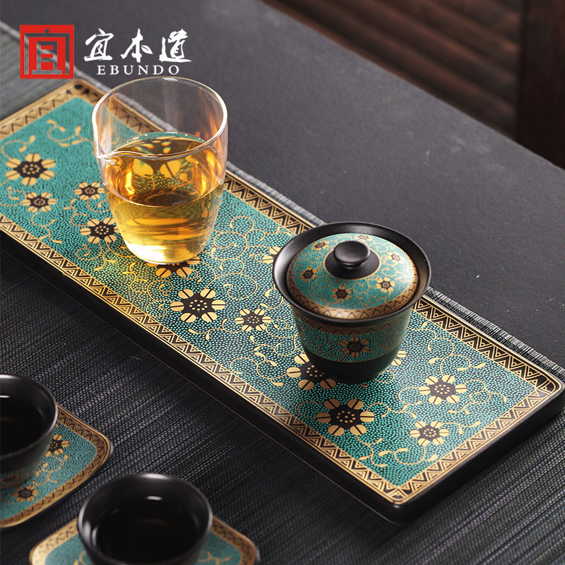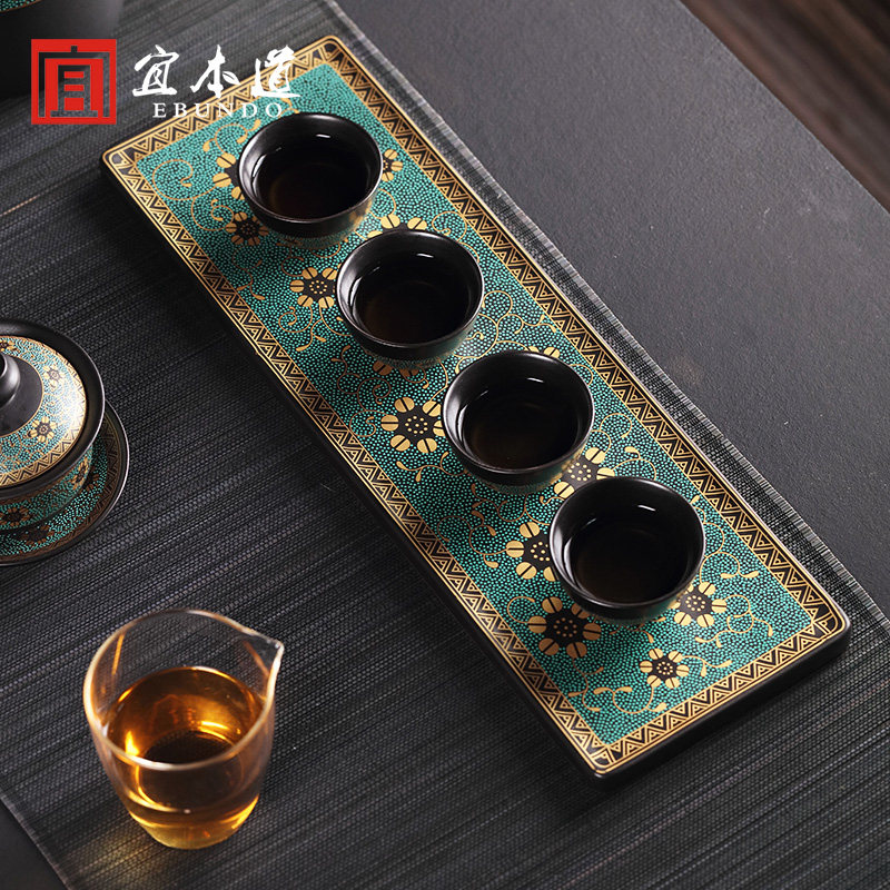 Ceramic household dry bubble tray mini tea tray kung fu tea set tea ceremony tea table simple tea tray tea serving rectangle