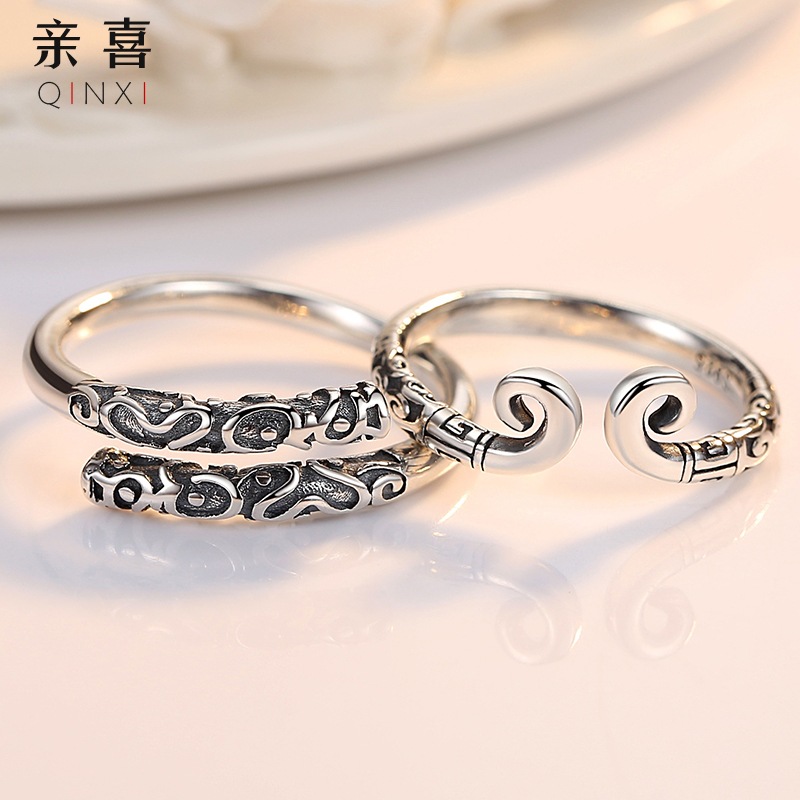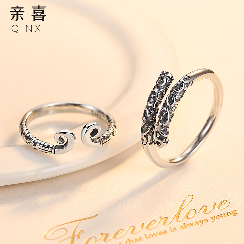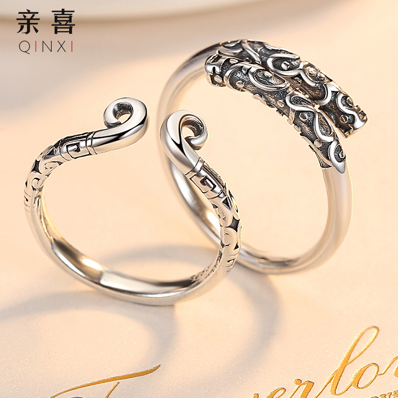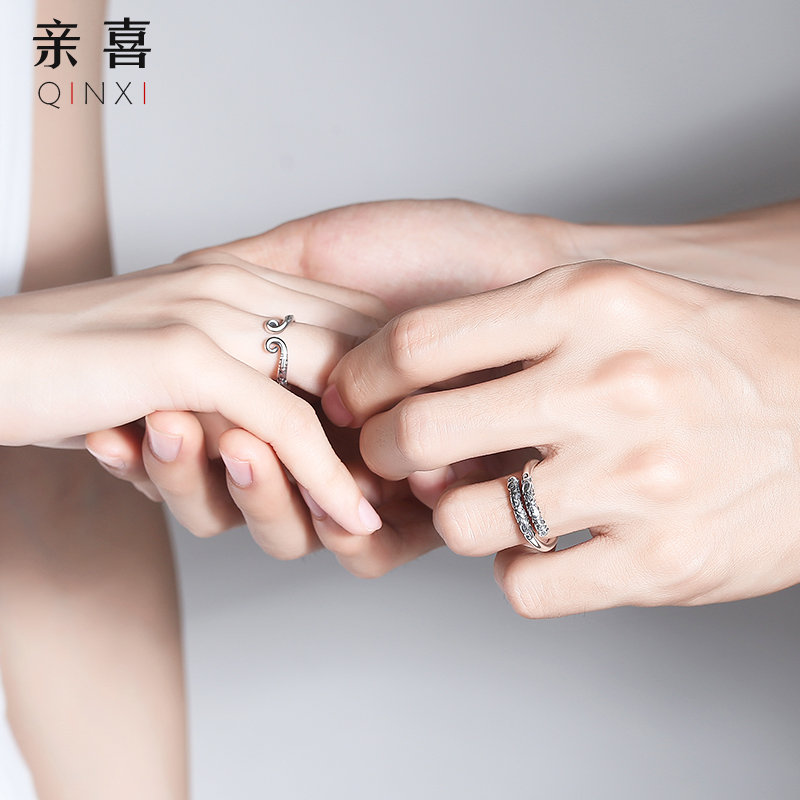 Pure Silver Tight Hoop Cursive Couple Rings A Couple of men and women to the ring shake soundtrack to the Zumbao Light Extravagant Valentine's Day qualification
