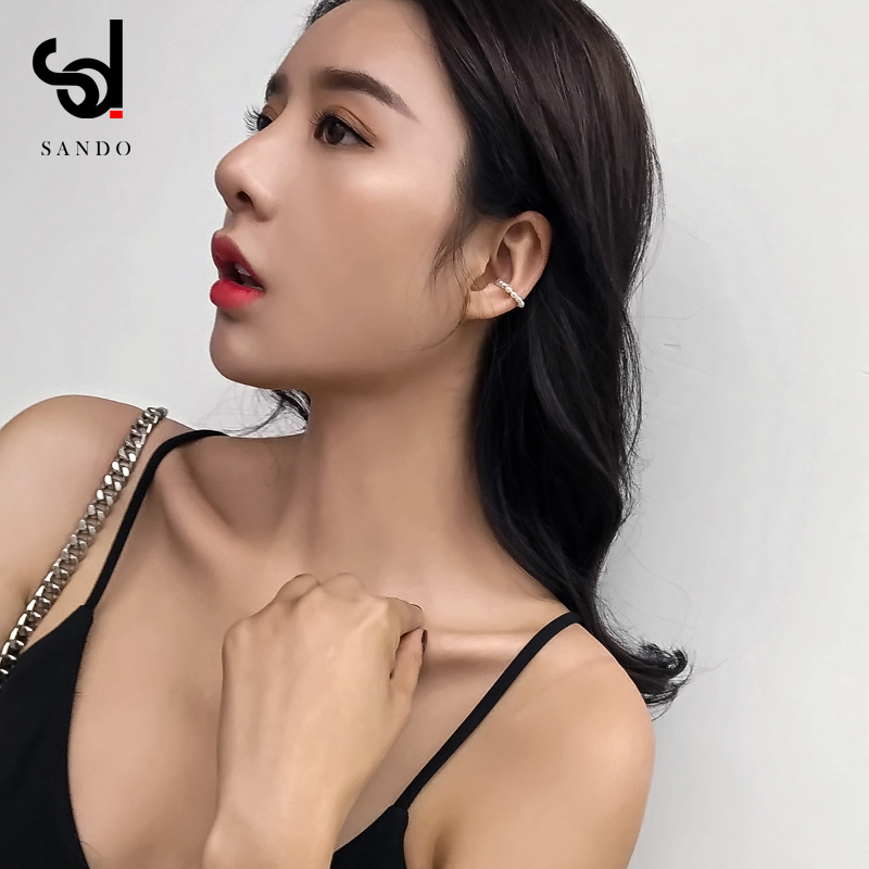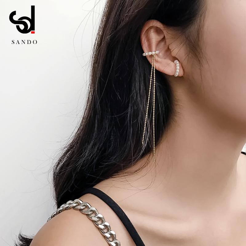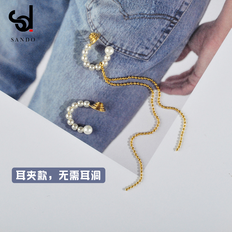 Long tassel pearl ear clip no ear hole female ear bone clip earrings advanced sense mosquito coil ear hook Qiao Xin with the same