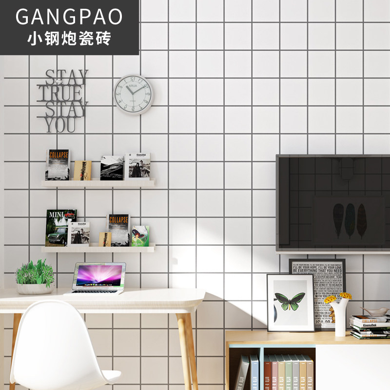 Nordic white brick 300x300 black white matte nine-grid wall brick kitchen powder room non-slip floor tiles