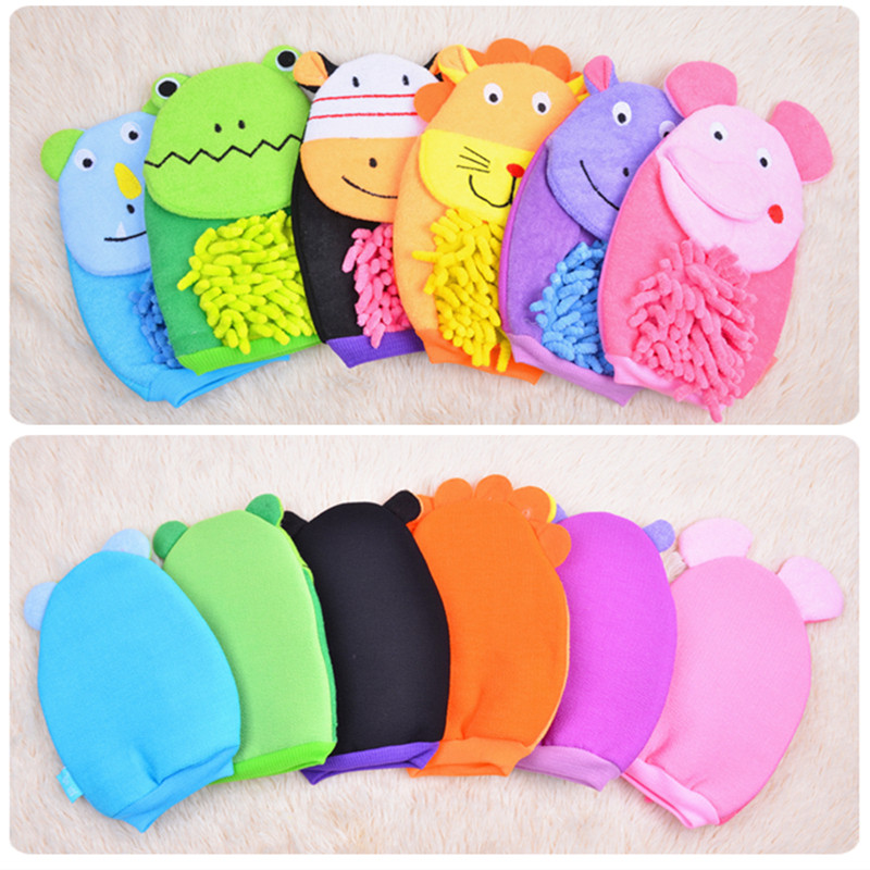 Cartoon bath towel Cute baby fine sand hand puppet bath gloves Double layer rub mud rub back children rub bath towel