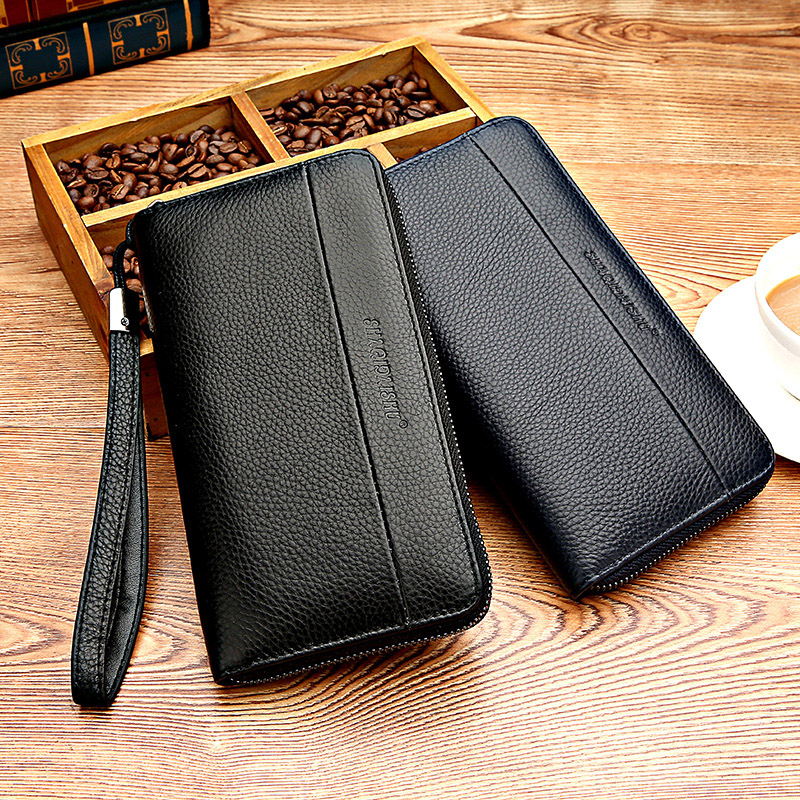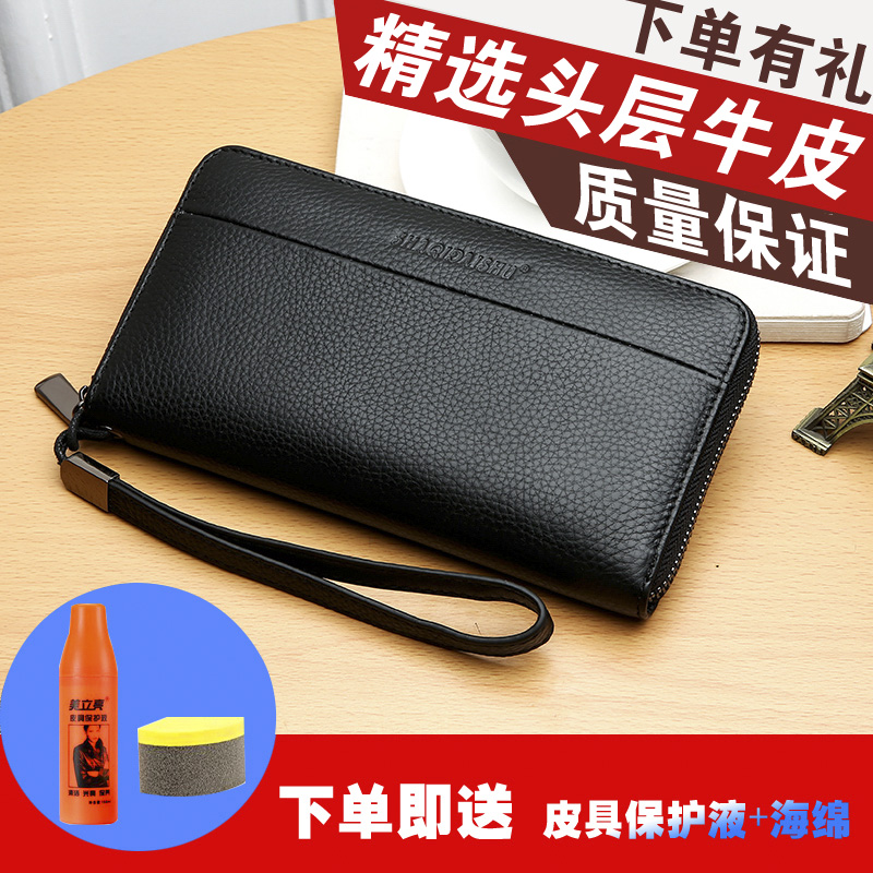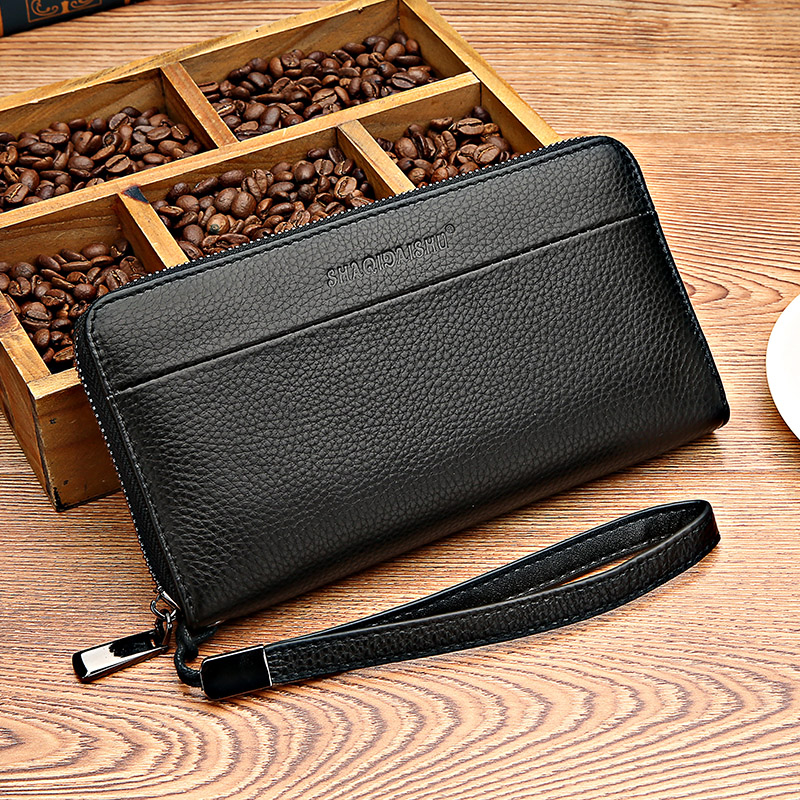 Saki Kangaroo Long Wallet Men's Leather Zipper Wallet Head Layer Cowhide Business Clutch Bag Casual Clutch Bag