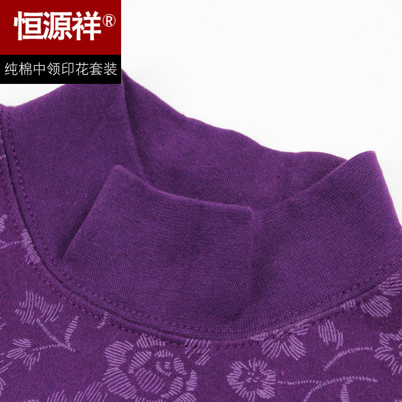 Hengyuanxiang autumn clothes and long trousers women's pure cotton sweater cotton underwear thin section middle-aged and elderly thermal underwear set autumn and winter