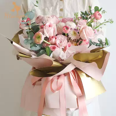 Double-sided two-color Ouya paper gold paper Korean flower bouquet wrapping paper material golden flower Flower Flower Flower Flower Flower