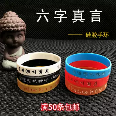 Six-character truth Chinese Tibetan one six-character Daming mantra Big follow-up mantra Silicone bracelet Bracelet