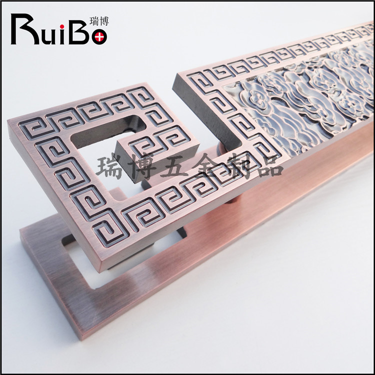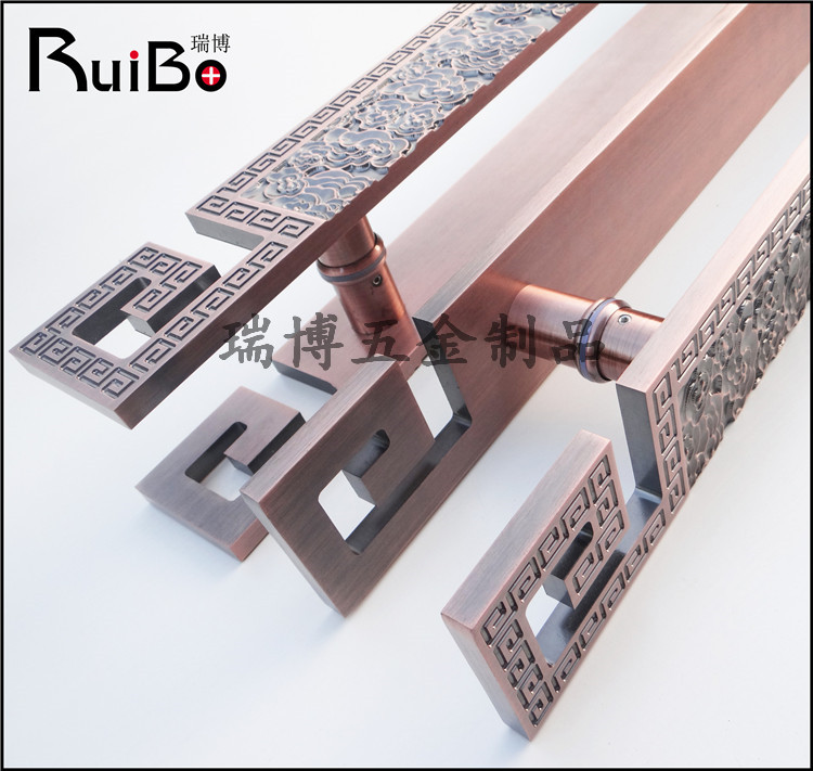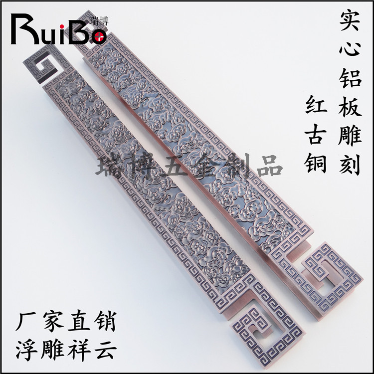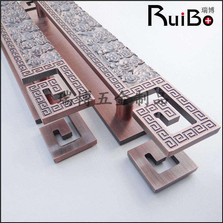 Chinese-style Ming-mounted back embossed auspicious cloud double switch glass door large handle framed door sliding door wooden door handle red bronze