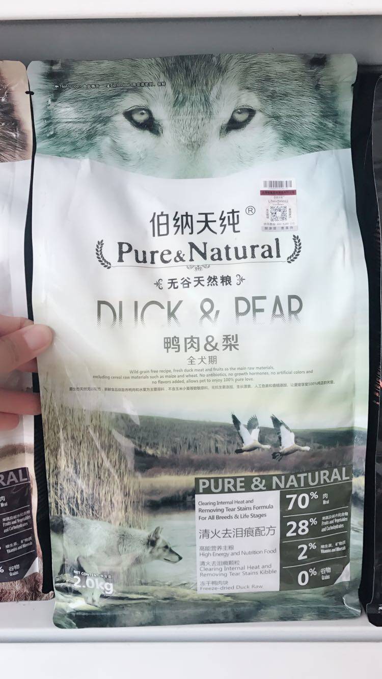 Bernatian pure dog food duck meat pear clear fire to remove tears, beauty hair and fattening whole dog period grain-free hypoallergenic food 2kg