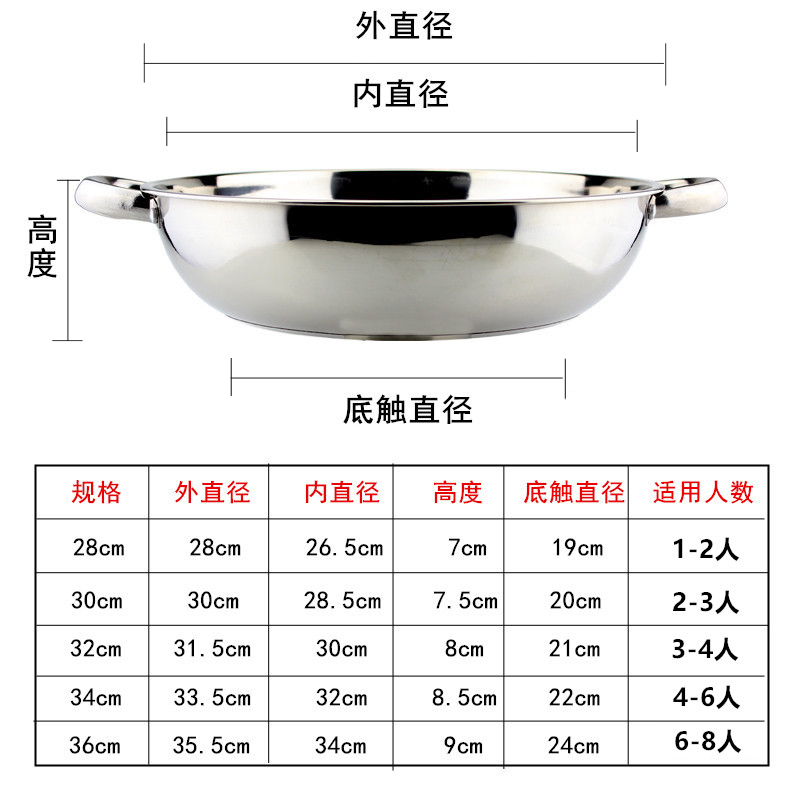 28cm Rebase clear soup pan suitable for 1-2 people 30cm Rebase clear soup pan suitable for 2-3 people 32cm Rebase clear soup pan suitable for 3-4 people 34c