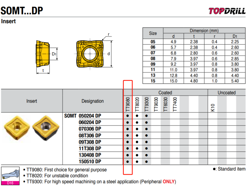 SOMT 08T306 DP TT9080SOMT09T308 DP TT9080SOMT 11T308 11T308 DP TT90