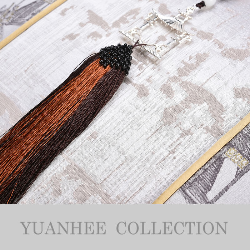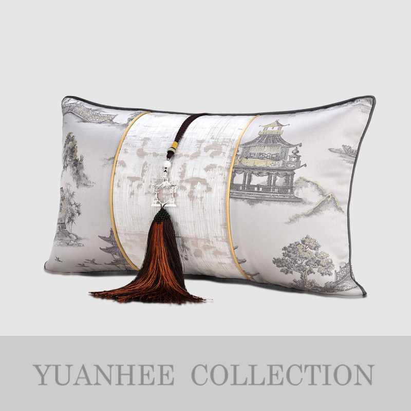 Yuanxi Yipin Modern New Chinese Style Model Room Sofa Back Cover Gazebo Pattern Light Gray Metal Decoration Tassel Waist Pillow