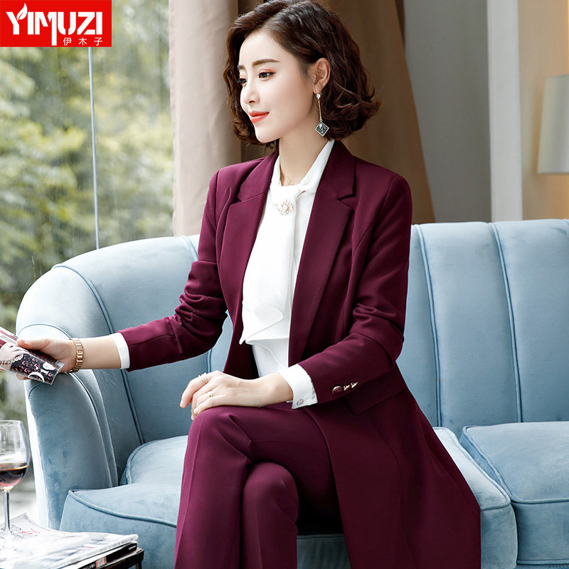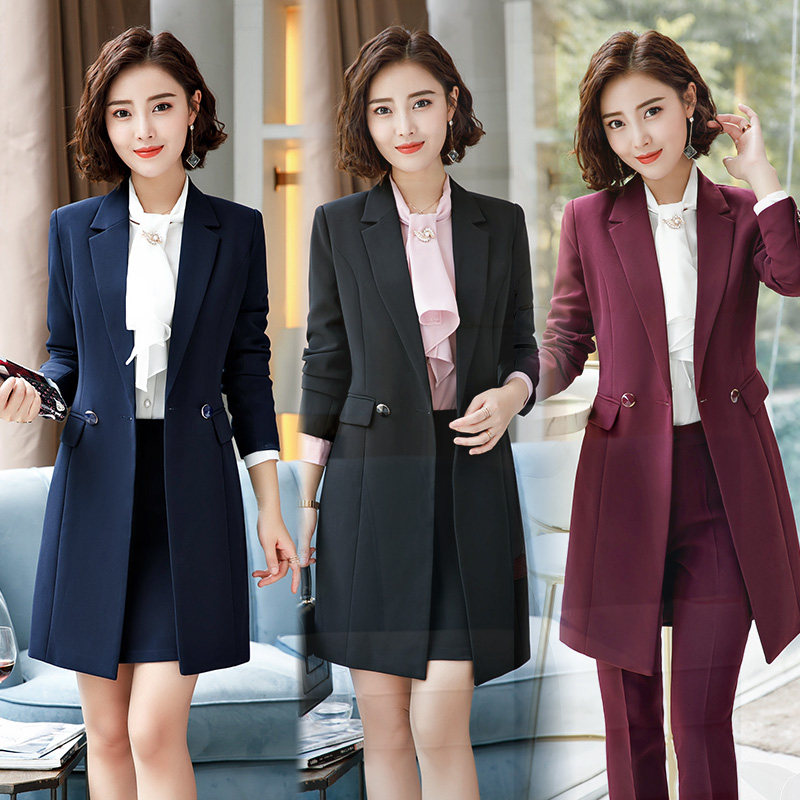 Medium and long version of the blazer women's spring and Autumn fashion Korean version of the casual professional suit Long version of the small suit overalls formal dress