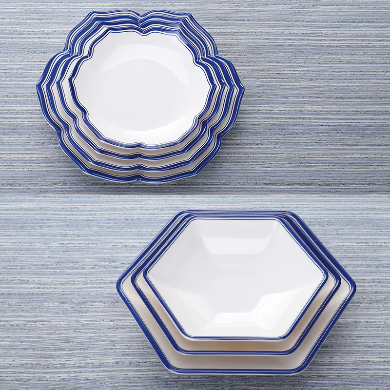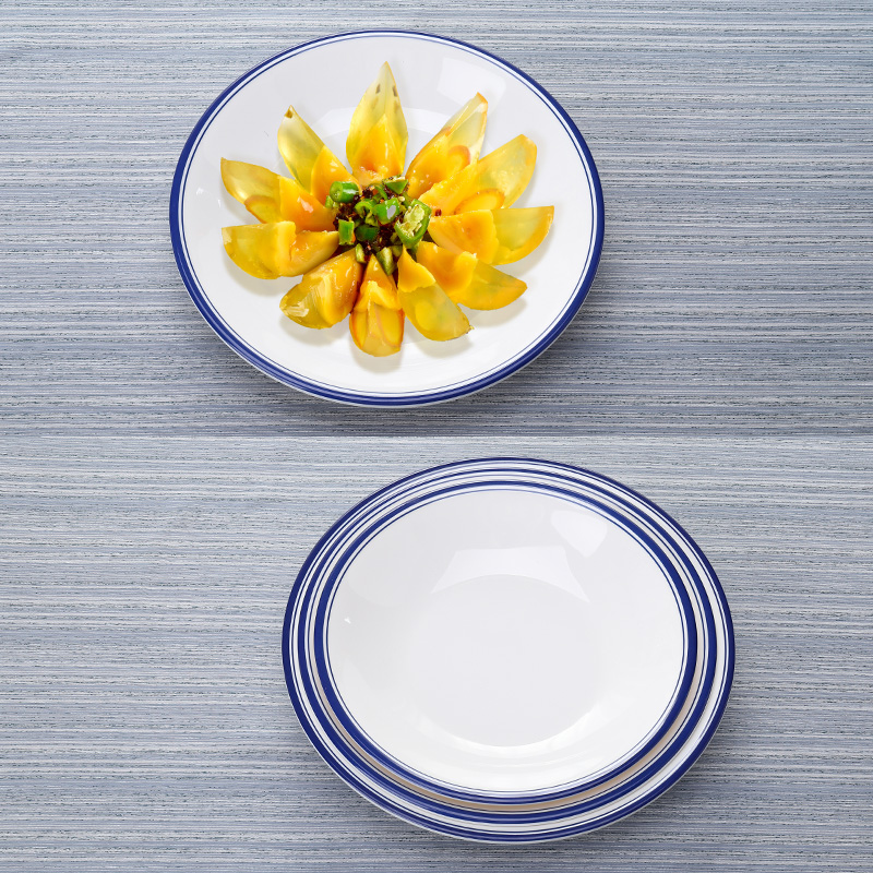 A8 round melamine tableware bone dish deep disc blue side dish plastic disc flat plate fast food plate buffet plate